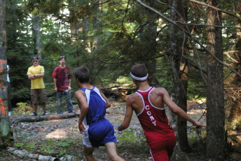 Maranacook - Yeah so I liked the weather at Laliberte a lot more than at Maranacook. It was hot and sticky this time! I did a jog of the course with Eben Hodgkins, Jarrod Lenfest, Logan Merrithew, and Aaron Bengtson and we were all soaked and dripping by the time we got back. We basically hid in the shade until it was time to go cheer on the girls. The girls race went well except one of our girls had a problem with her foot and was in a lot of pain. She made it through 2/3 of the course but had to make it back to our team area mid-race for some ice. I also watched Abby Mace win by